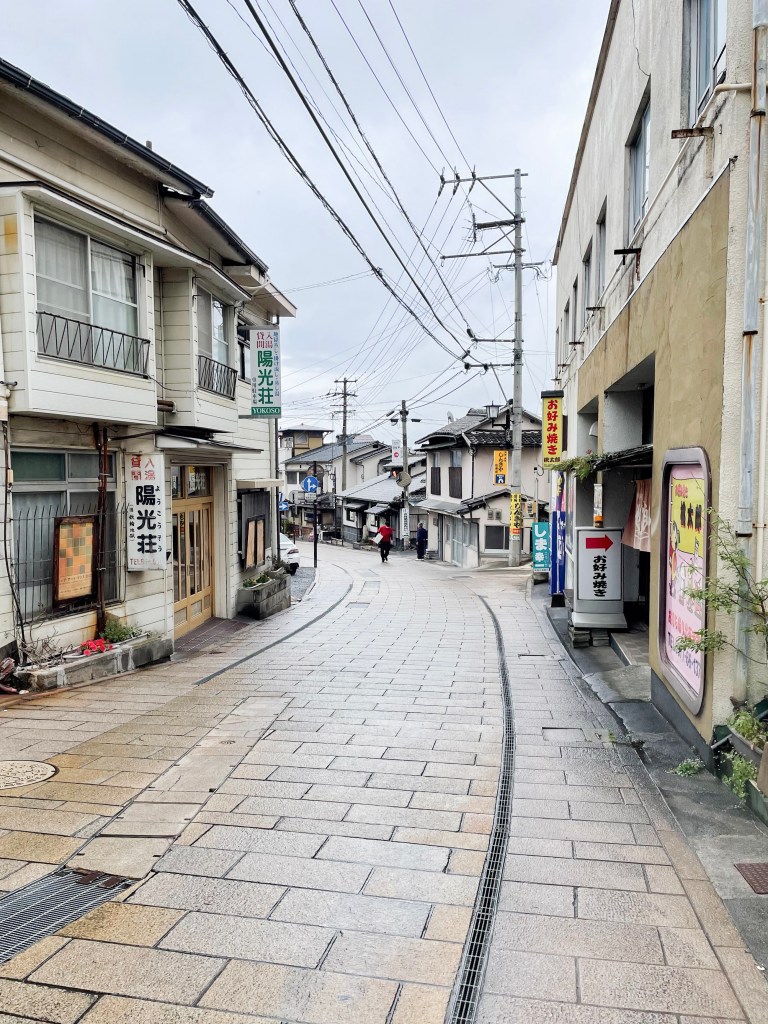 หลังจบทัวร์บ่อน้ำพุร้อน เราจะเดินไปยังออนเซ็นที่หมายมั่นว่าจะไปแช่ให้ได้ ระยะทางไม่ไกลใช้เวลาเดินประมาณ 10 นาที แต่ระหว่างทางสวยมากเลยค่ะ เดินเพลินมาก ถ้าในวันที่อากาศดีเป็นเมืองที่ถ่ายรูปสวยมากนะ