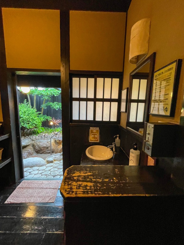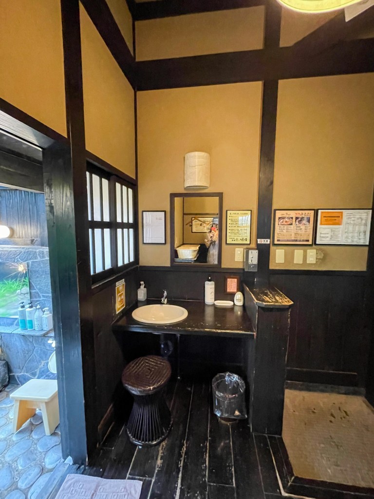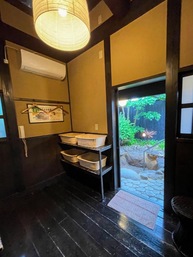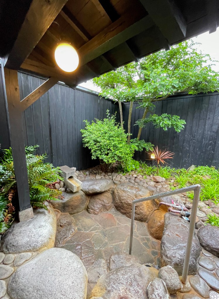 เมื่อเข้ามาในห้องแบบส่วนตัว ก็จะเจอกับห้องแต่งตัว มีชั้นวางของ โต๊ะเครื่องแป้ง แล้วเปิดประตูด้านในจะได้เจอกับบ่อออนเซ็นแบบเอ้าท์ดอร์