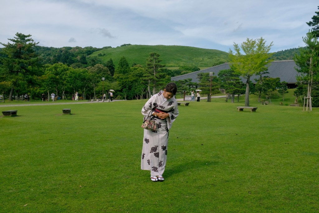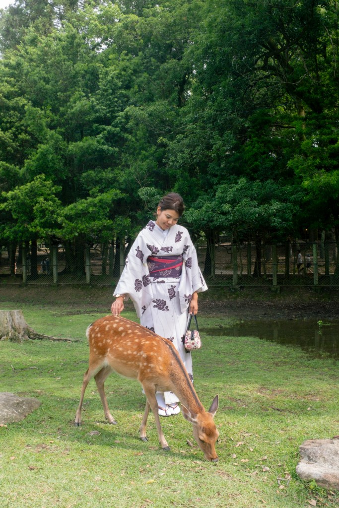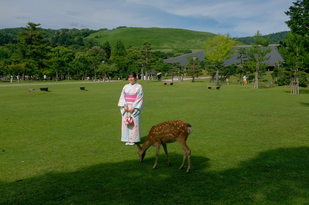 นาราปาร์คมีพื้นที่เยอะมากกก แนะนำว่าควรมีเวลาให้ที่นี่เยอะๆ เดินเล่น นั่งเล่น ถ่ายรูปกับกวางไปเรื่อยๆ รู้ตัวอีกทีใกล้หมดวันแล้ว และใครที่แต่งชุดกิโมโนแบบเรา ถ่ายรูปเล่นที่นี่เพลินดีค่ะ มุมกว้างๆ ภูเขา ต้นหญ้า และเจ้ากวาง ได้ภาพสวยไปอีกแบบนะ