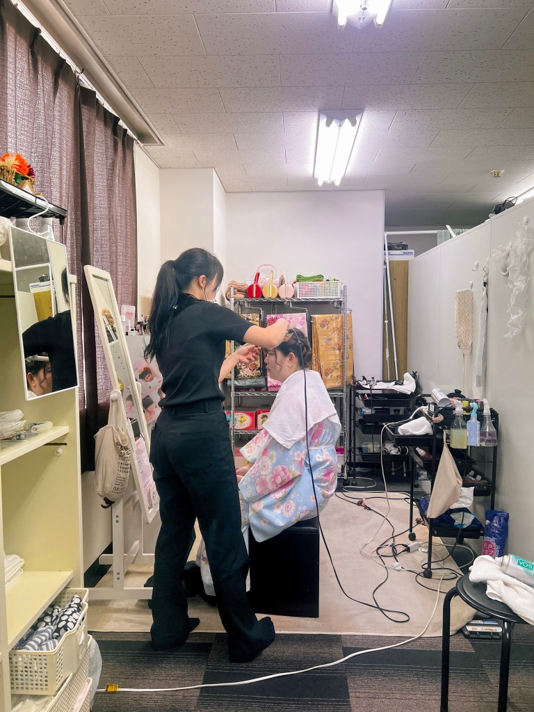 ทางร้านจะมีแพ็คเกจหลากหลายให้เราเลือก ตั้งแต่เช่าแค่ชุดอย่างเดียว หรือจะเลือกแบบแต่งหน้า ทำผมด้วย มีครบ ส่วนเรากับเพื่อนเลือกแบบชุดพร้อมทำผม แต่ไม่มีแต่งหน้า ค่าใช้จ่ายสิริรวมแล้วคนละ ประมาณ 5000 yen