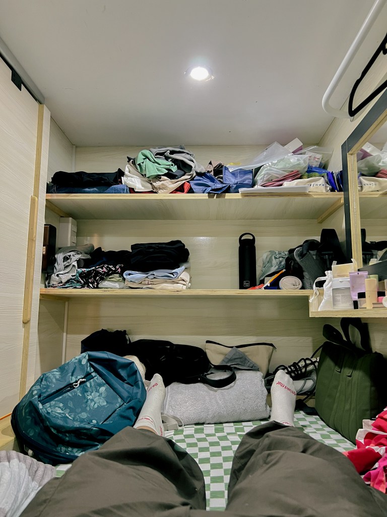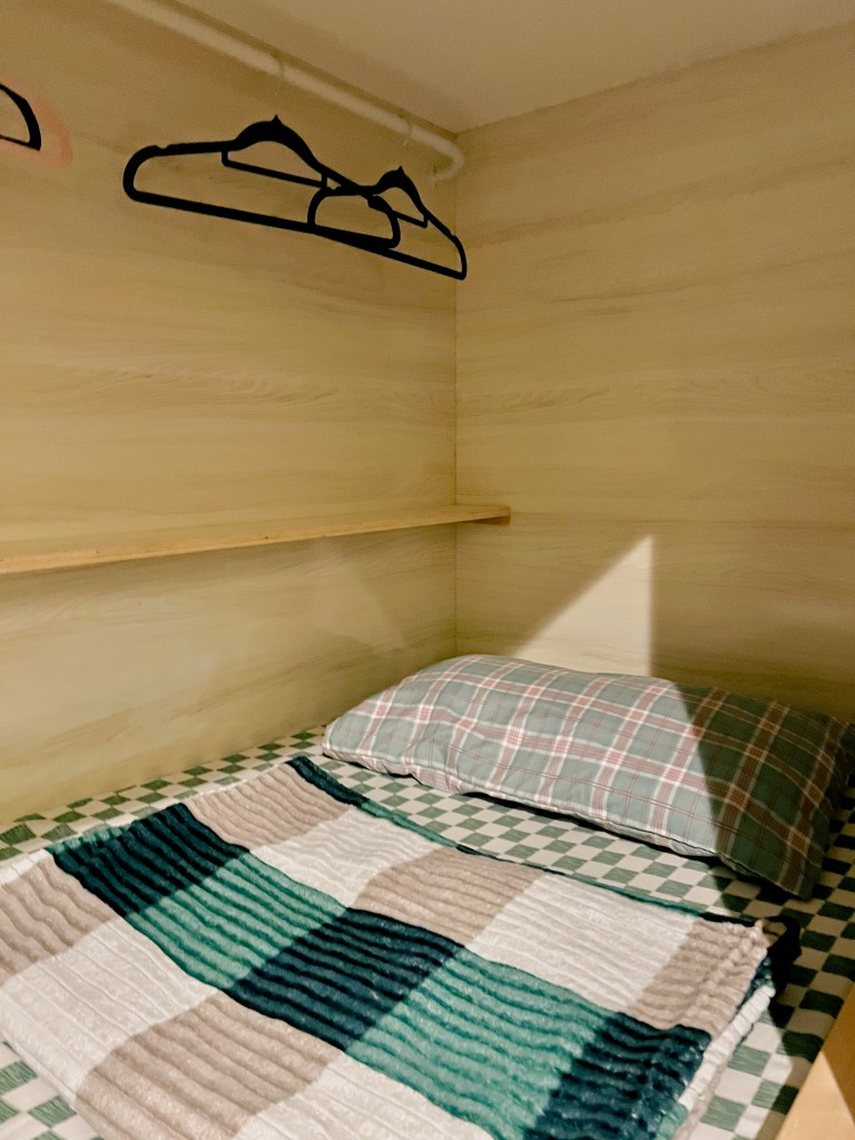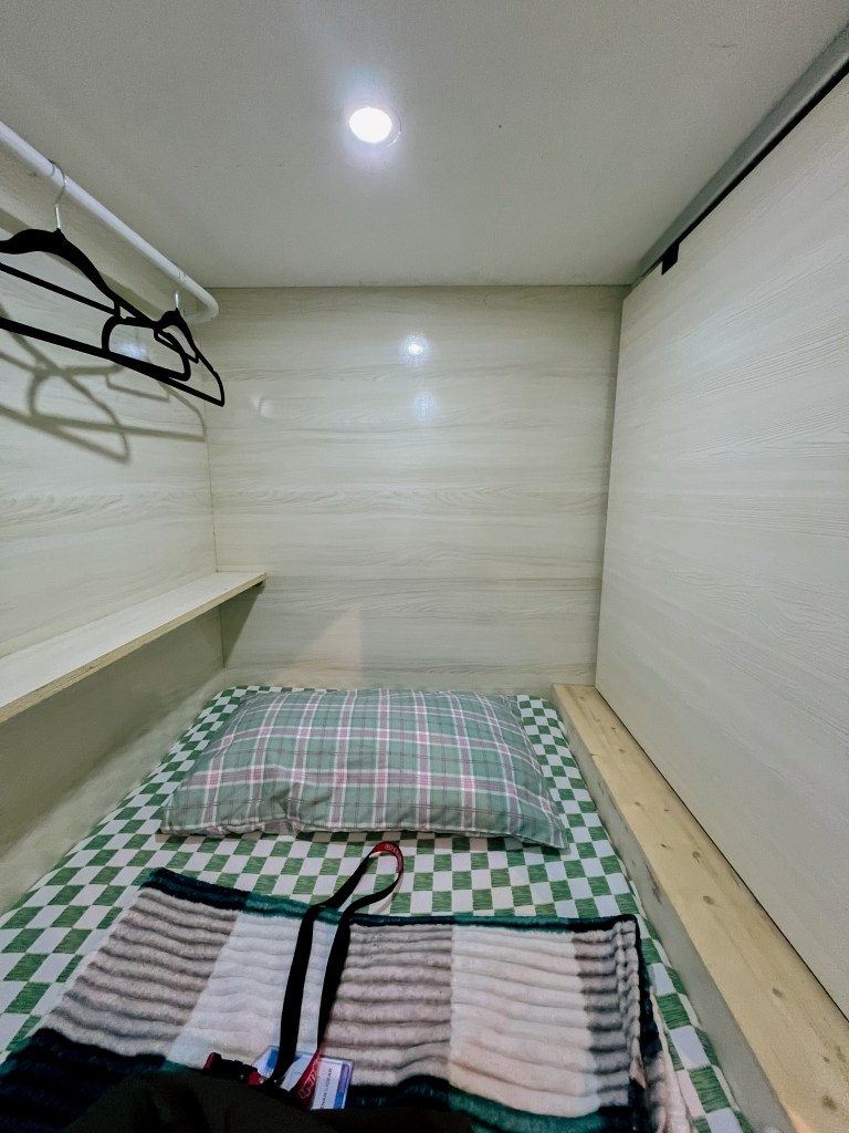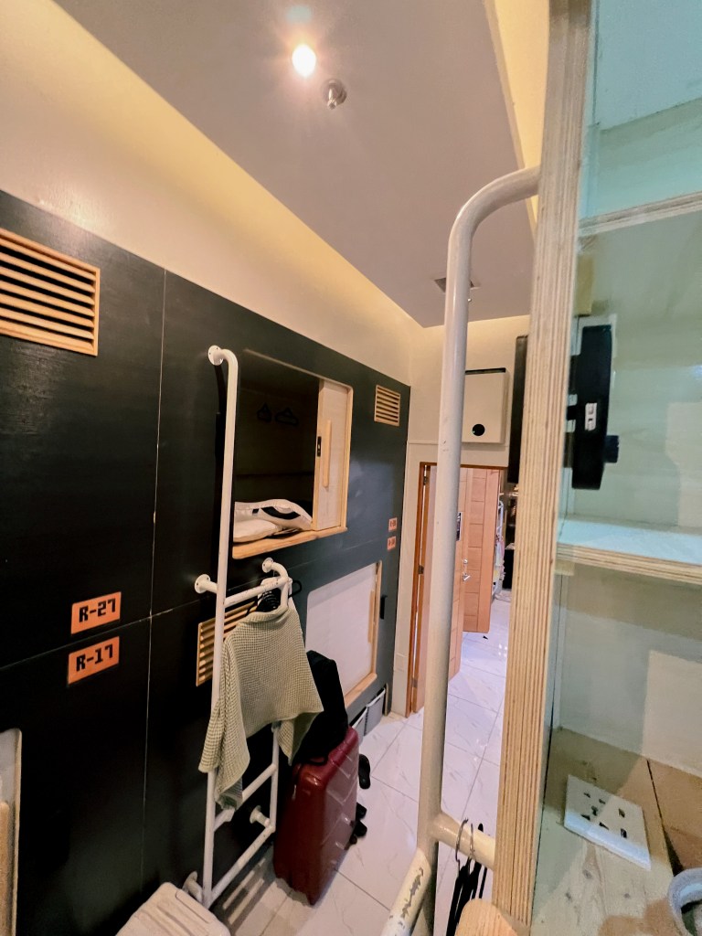 ใครมาเรียนที่ QQ English ที่นี่จะมีหอพักแบบแคปซลูให้บริการด้วยค่ะ โดยจะแยกชาย/หญิง ซึ่งหอพักให้อารมณ์เหมือนโฮสเทลเลยล่ะ ตัวแคปซลูจะเป็นเหมือนหลุ่มหลบภัยสำหรับเราก็ว่าได้ ของทุกอย่างเราจะอยู่ในนั้น ภายในขนาดไม่ใหญ่นัก แต่ก็ไม่ได้แคบเกิน ยังมีพื้นที่ให้คนสูง 163 ซม. เหลือพื้นที่และพลิกตัวได้สบายๆ ภายในแคปซูลจะมีชั้นวางของ ไฟเฉพาะในแคปซูล และปลั้กไฟ และแคปซูลจะมี 2 ชั้นนะคะ ใครจะได้บนหรือล่างก็อยู่ที่ว่ามีเตียงไหนว่าง (ส่วนเราได้ชั้นบนจ้าาาาา ก็วันที่มามันดันมาพร้อมกัน 4-5คนอ่ะ)