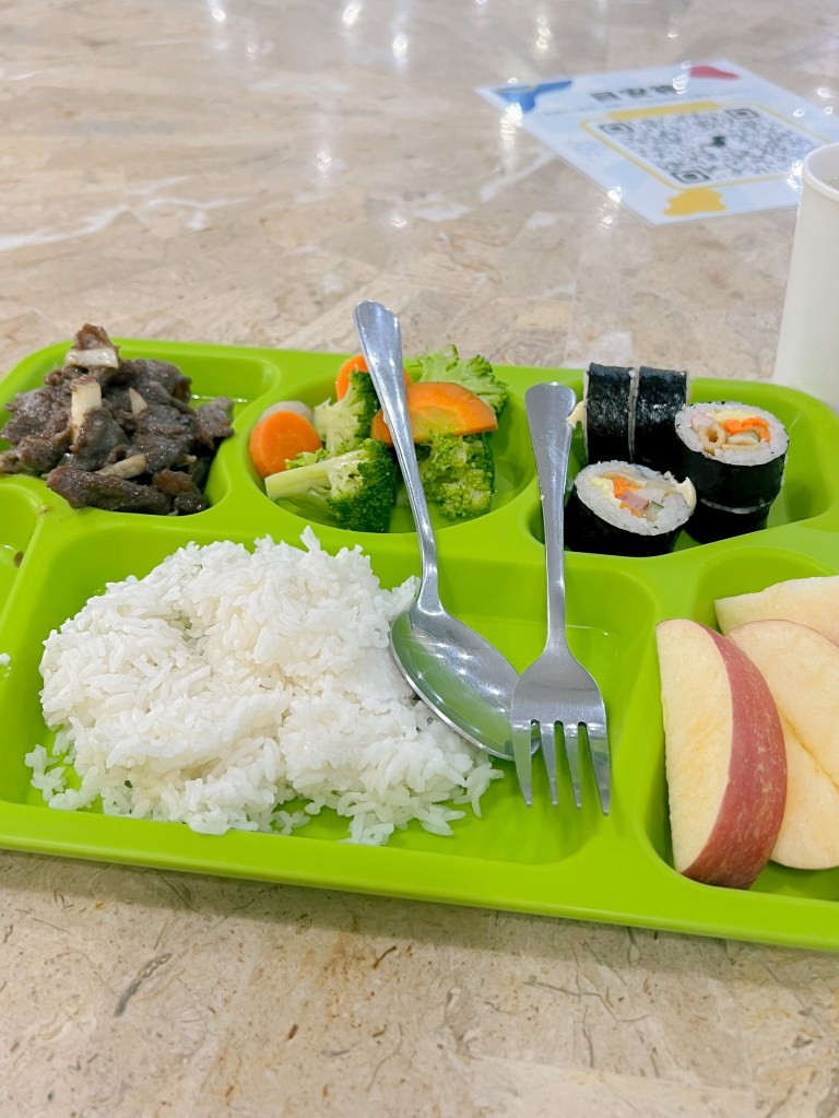 ส่วนอาหารในโรงอาหารของโรงเรียน ใครที่ติดอาหารรสแซ่บ แนะนำให้เอาน้ำพริกมาด้วย ส่วนตัว เรากินได้ รสชาติเฉยๆ ไม่ได้อร่อยว้าว แต่ก็ไม่แย่นะ (บางเมนูติดเค็มไปหน่อย เพราะคนฟิลิปปินส์ติดเค็ม) และเมนูอาหารที่โรงเรียนจะหมุนเวียนผลัดเปลี่ยนกันไปเรื่อยๆ
