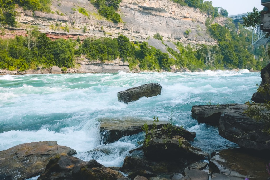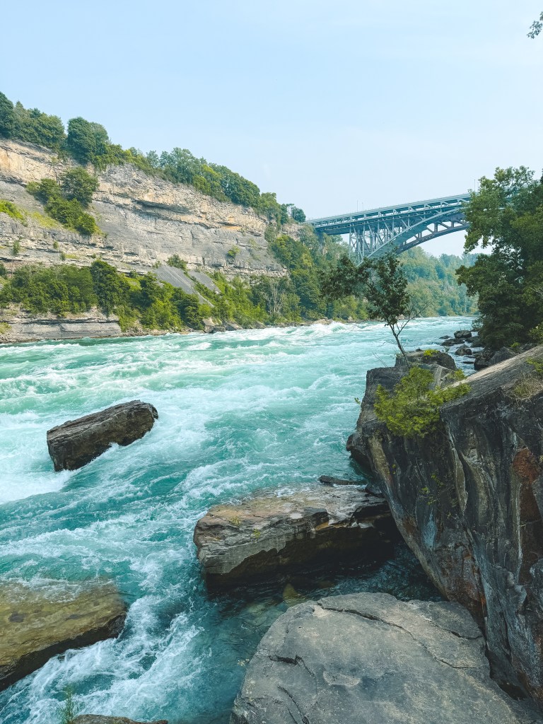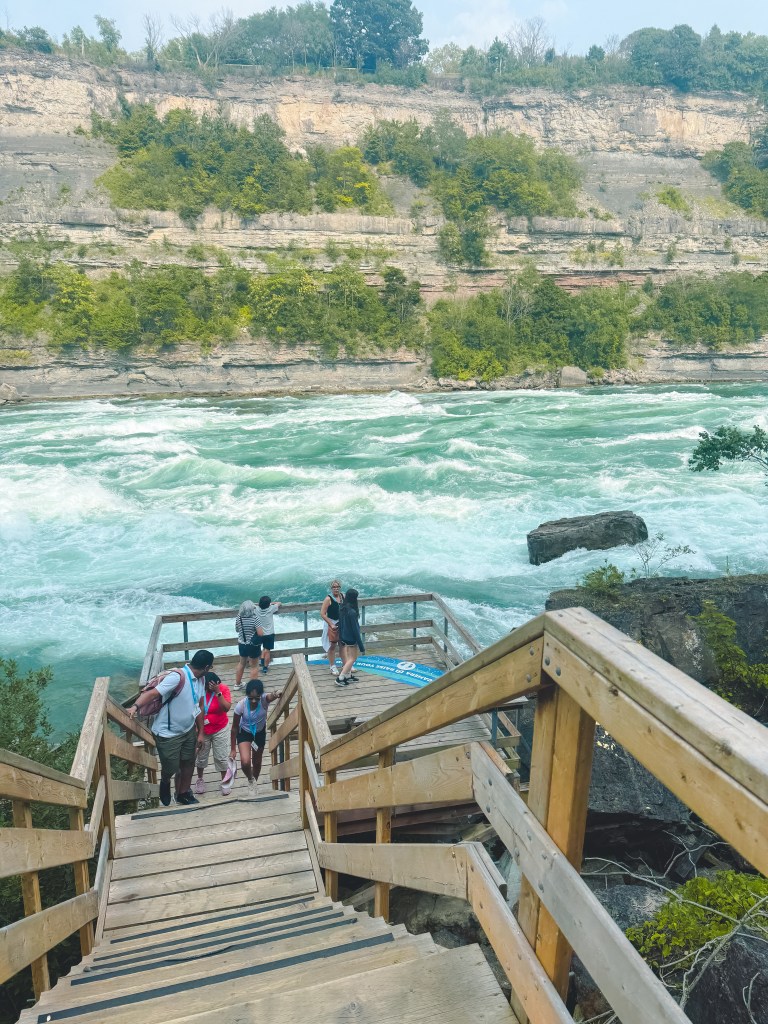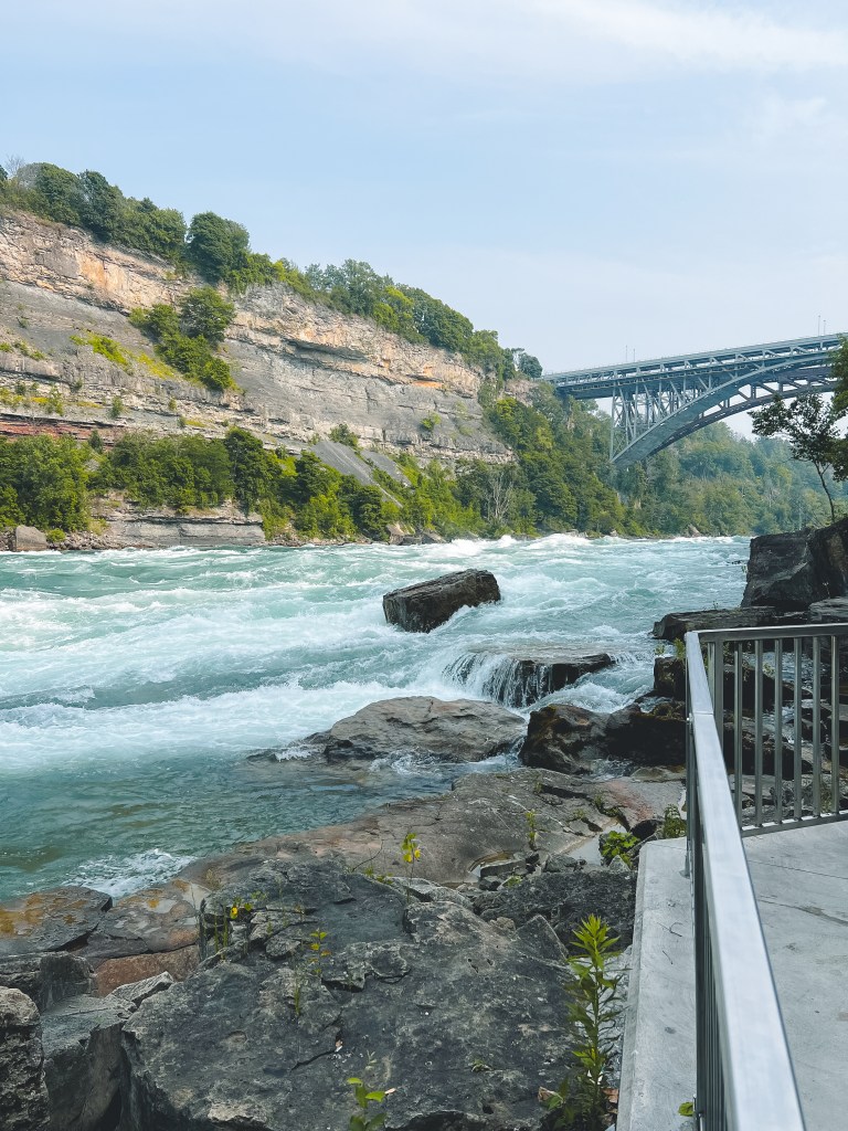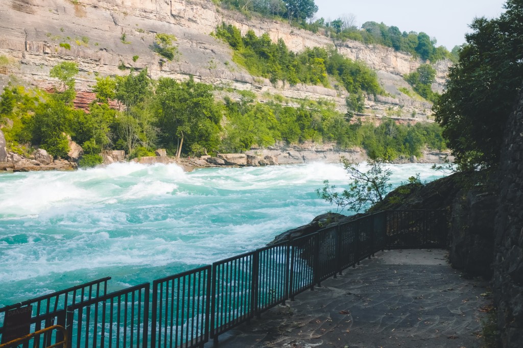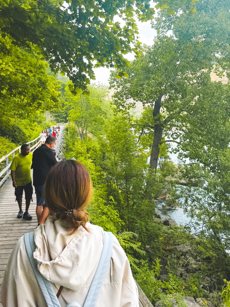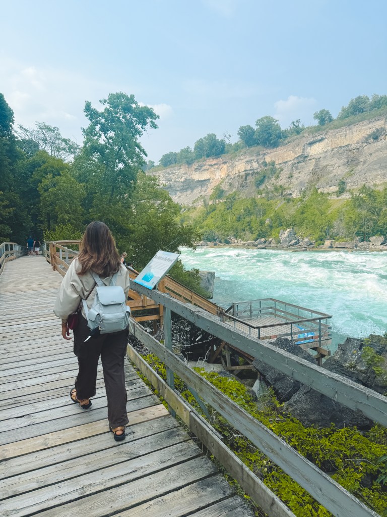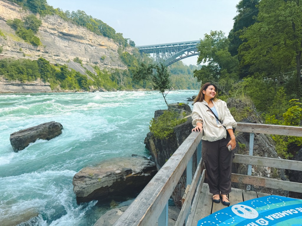 ทางเดินที่จะพาเราไปเดินชมกระแสน้ำที่ไหลเชี่ยวกรากของแม่น้ำ Niagara แล้วจุดนี้ยังเห็นสะพานที่ข้ามไปยังฝั่งอเมริกาด้วยนะ ที่สำคัญมีจุดถ่ายรูปสวยๆอยู่ด้วยนะคะ