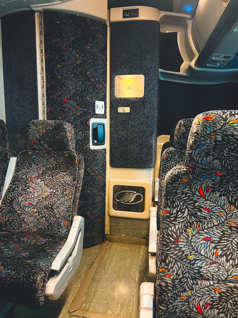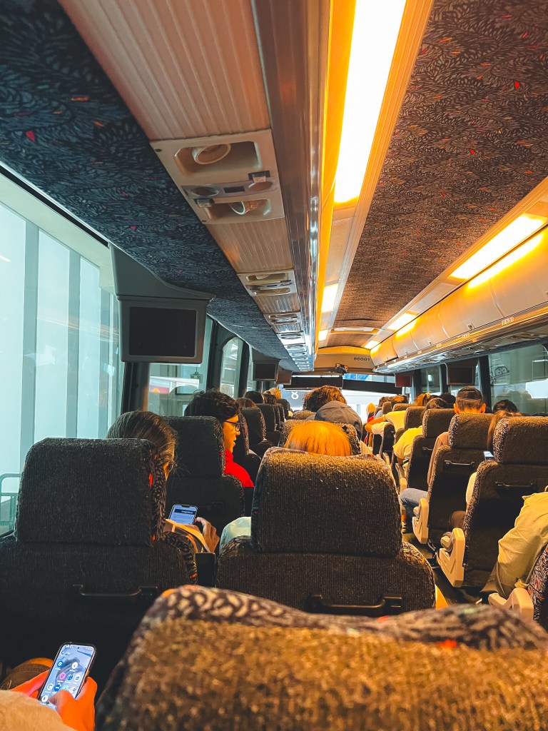 บัสที่เราเดินทาง ถือว่าดีทีเดียวค่ะ บนค่อนข้างกว้าง ที่วางเท้ากว้างกำลังดี เบาะปรับเอนได้ มีห้องน้ำบนรถ ที่นั่งไม่ได้ฟิกเอาไว้ ขึ้นก่อนได้เลือกก่อน โดยรวมๆถือว่าดีทีเดียวค่ะ