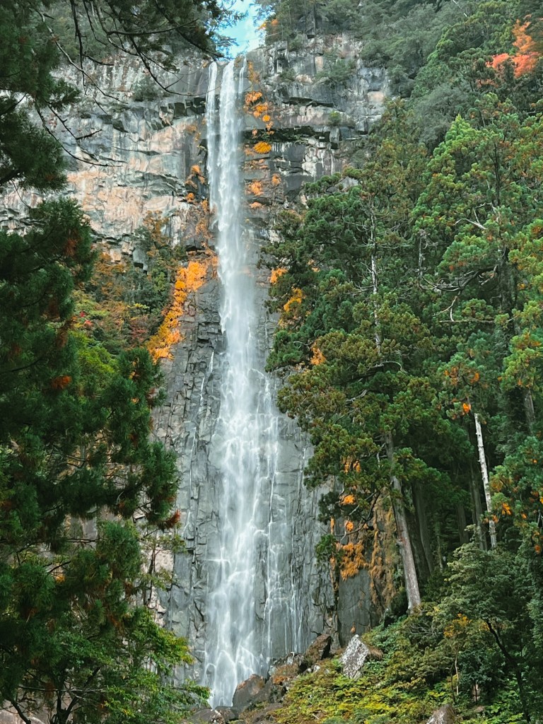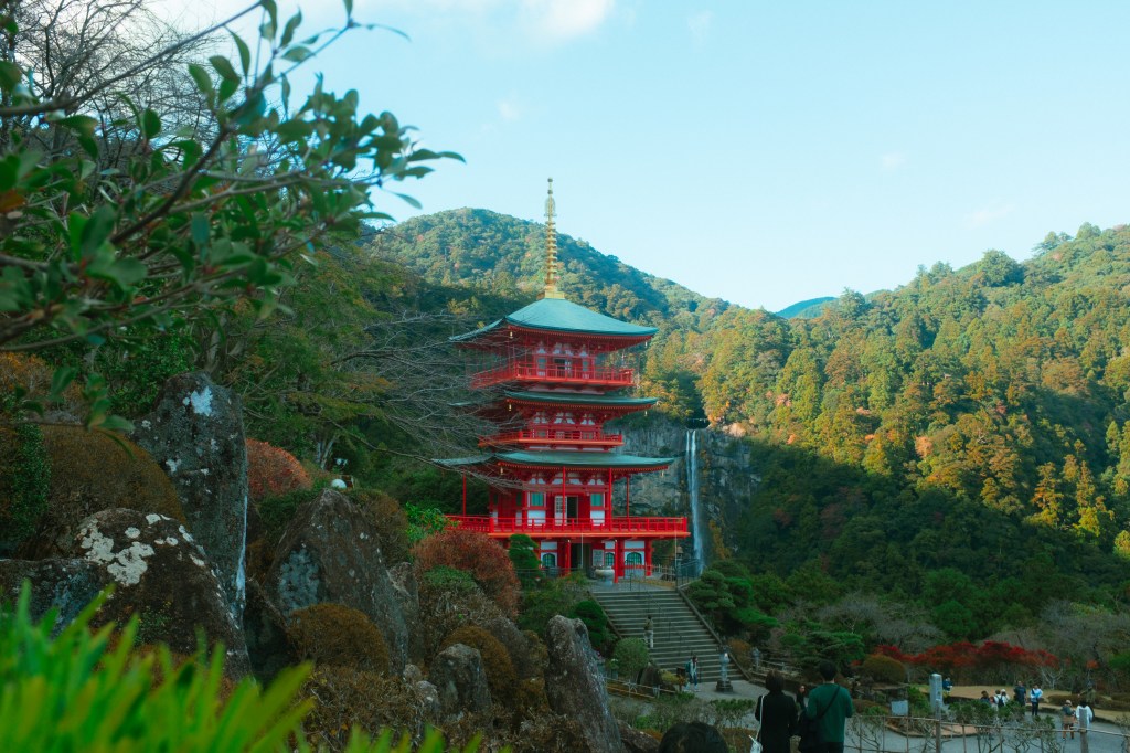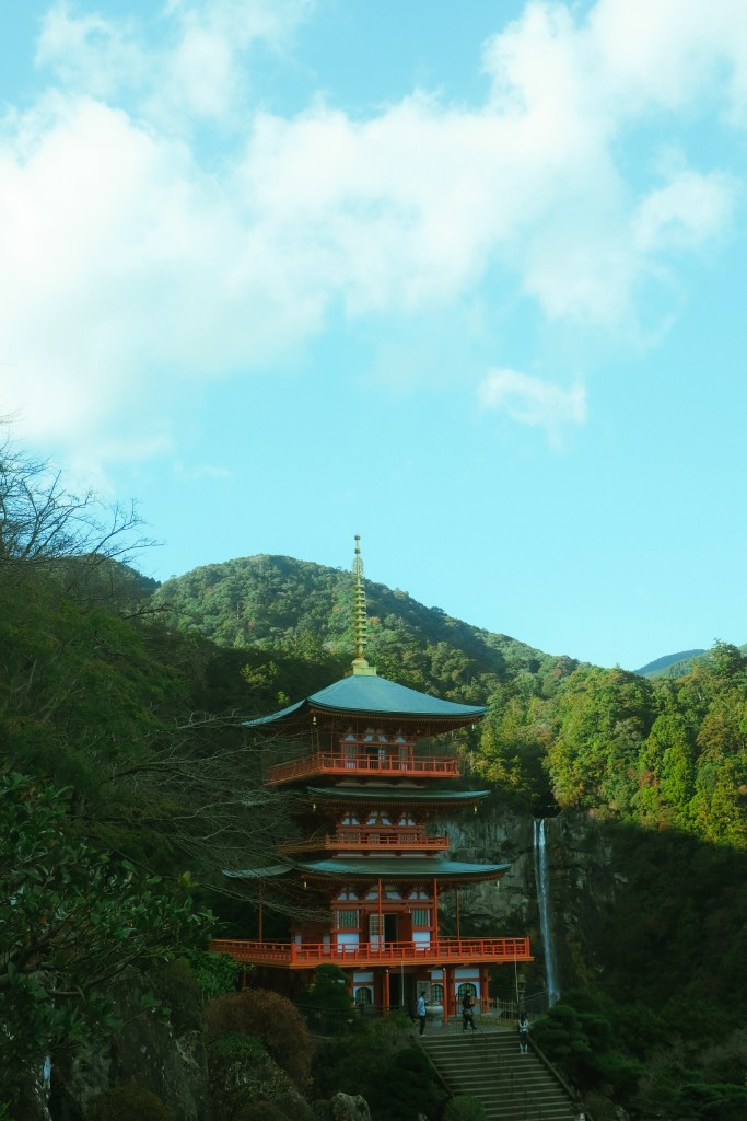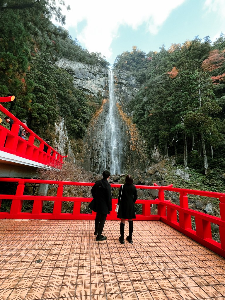 ที่นี่คือ Kumano Nachi Taisha เป็นหนึ่งในศาลเจ้าที่มีความสำคัญและโดดเด่นมากที่สุดของเมืองคุมาโนะ โดยไฮไลท์ของที่นี่ก็คือ บริเวณศาลเจ้าสีแดงหลายชั้นที่เบื้องหลังมีน้ำตกที่สูงที่สุดในญี่ปุ่น มีความสูงถึง 133 เมตร เป็นจุดชมวิวที่สวยงามและเป็นเหมือนสัญลักษณ์ของศาลเจ้าคุมาโนะที่แขกไปใครมาต้องแวะ และซึ่งศาลเจ้าแห่งนี้นั้นเป็นส่วนผสมการสร้างที่ลงตัวอย่างมากระหว่างศาสนาพุทธและศาสนาชินโต